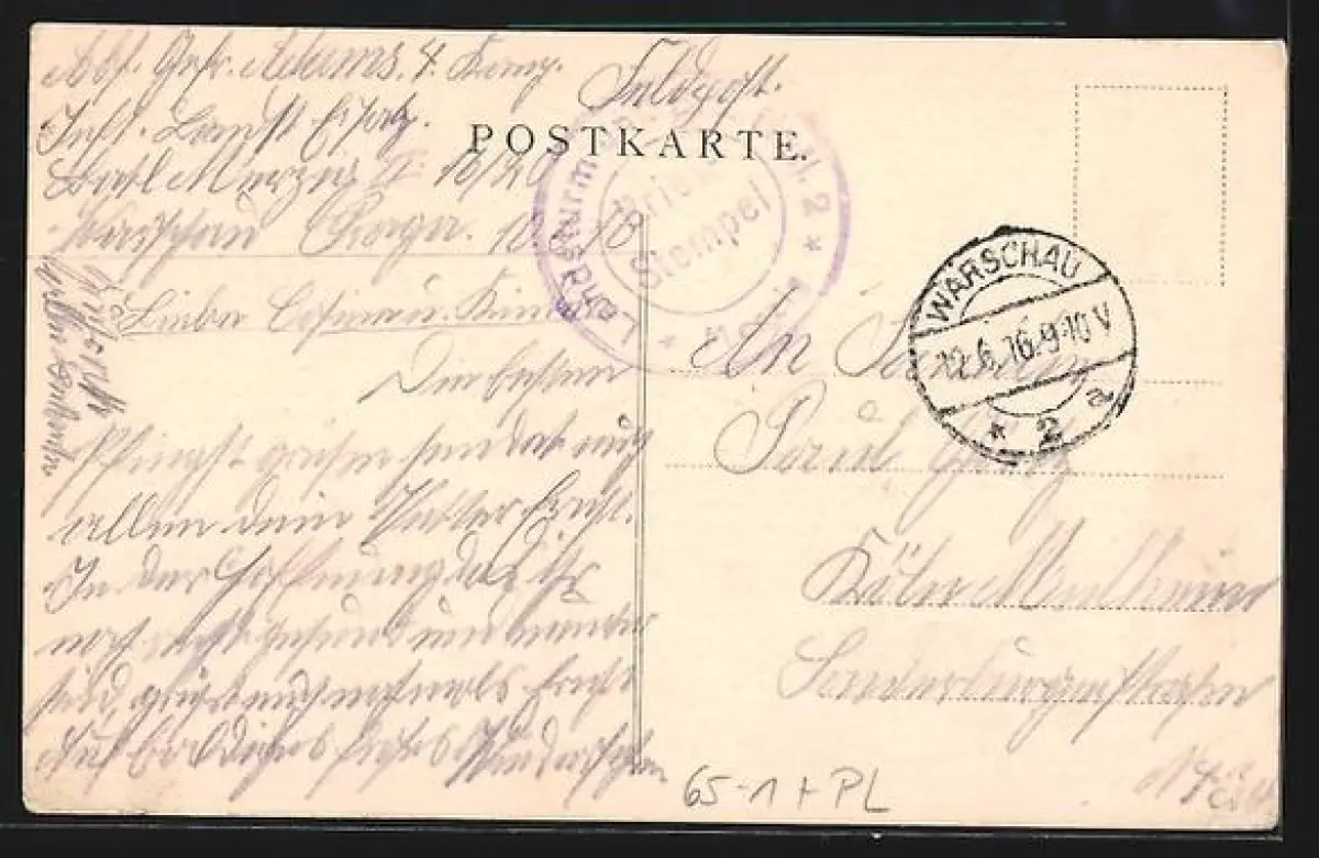 alte Ansichtskarte, gelaufen 1916, Eckknicke unten, guter Zustand