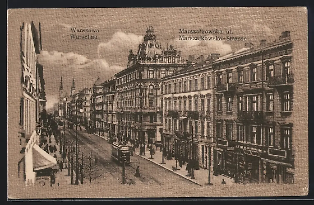 AK Warszawa, Marszalkowska ul., Strassenbahn