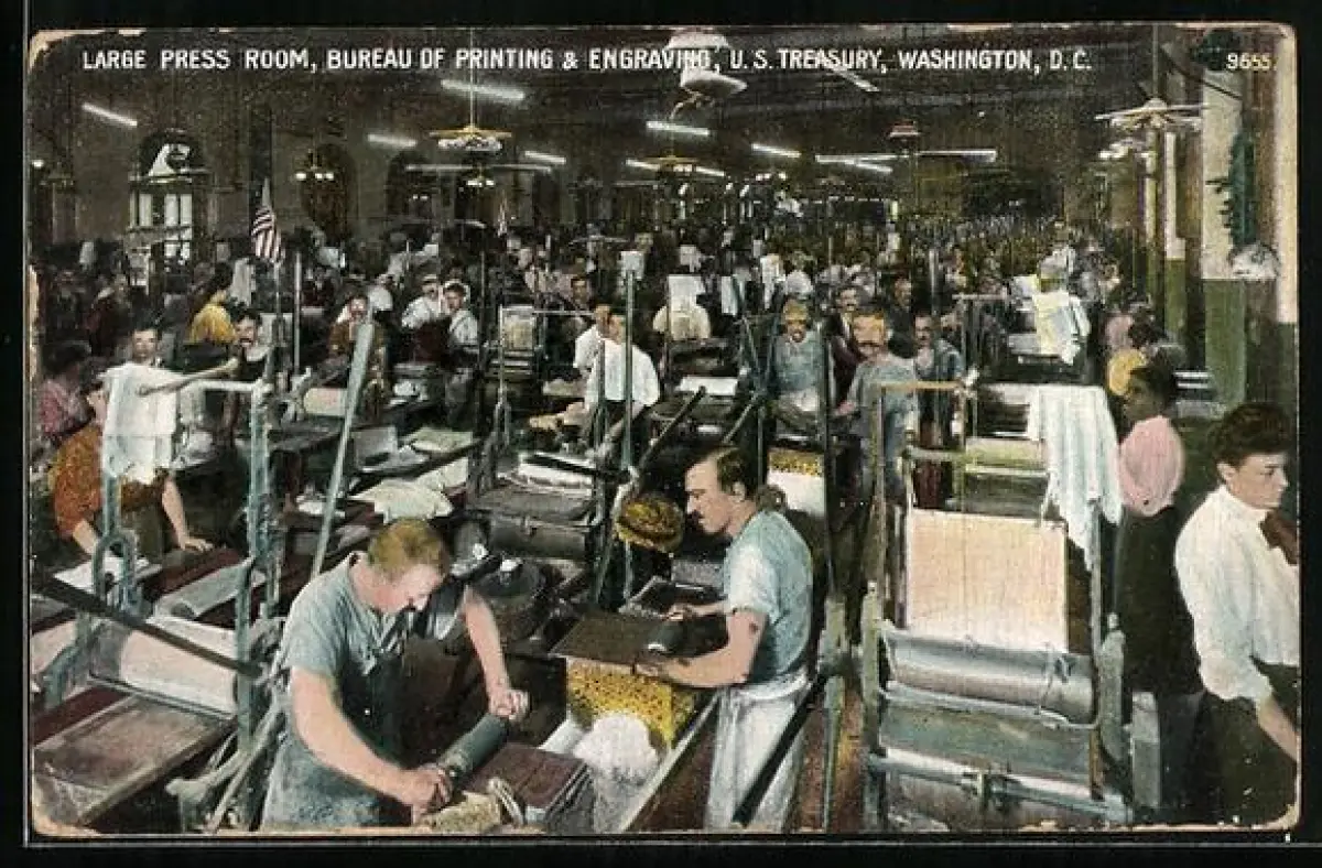 AK Washington D.C., D. C., U. S. Treasury, Large Press Room, Bureau of Painting & Engraving