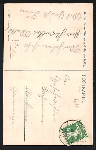 AK Wassen /Gotthardbahn, Teilansicht und die Wingälle
