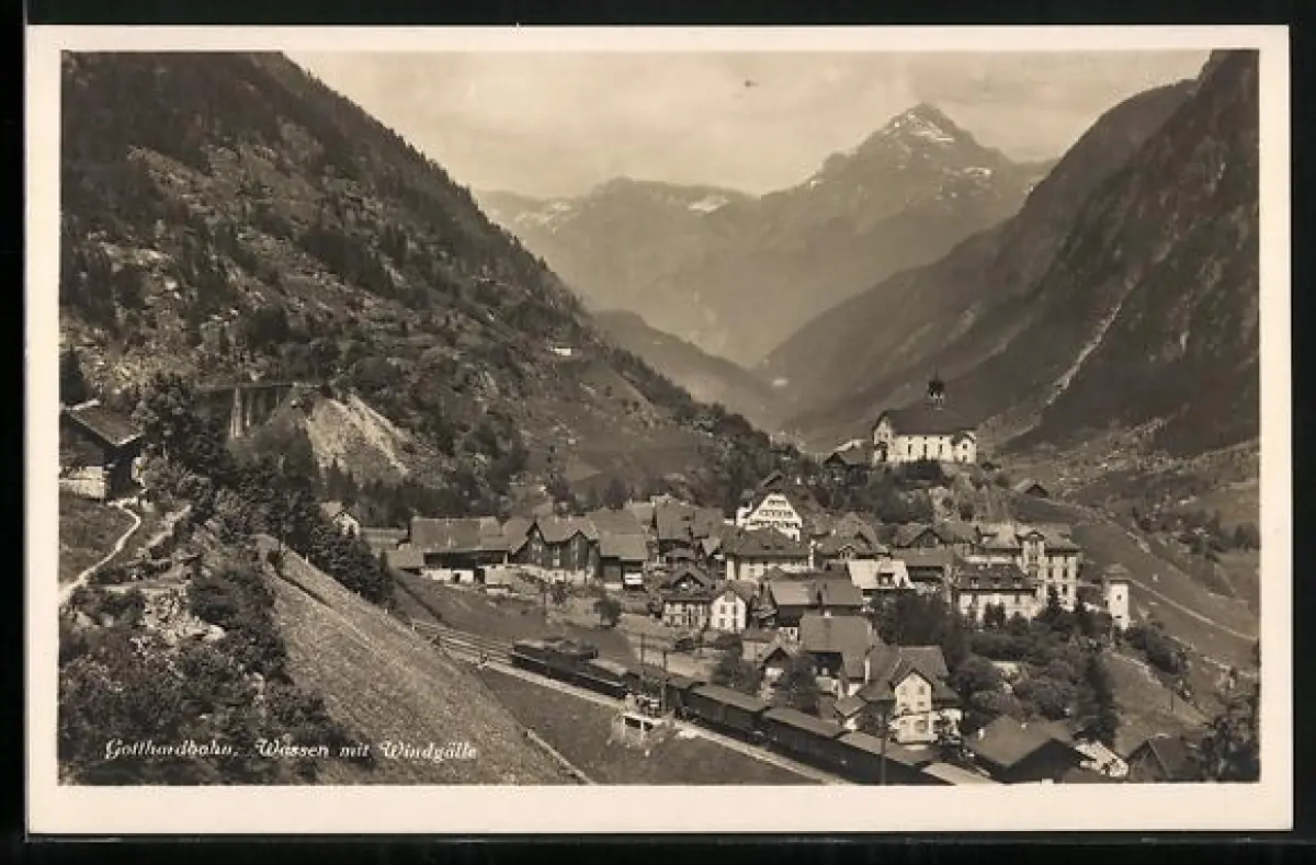 AK Wassen, Gotthardbahn mit Windgälle