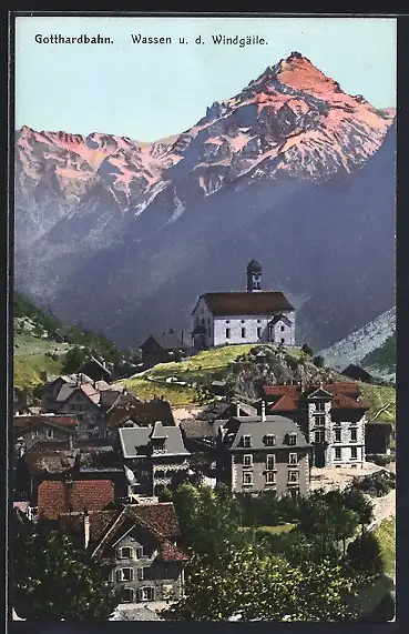 AK Wassen, Ortsansicht mit Kirche und die Windgäile