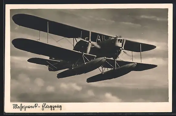 AK Wasserflugzeug Heinkel He 59 in der Luft