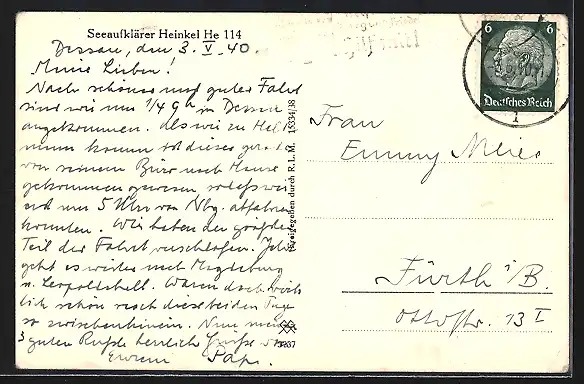 alte Ansichtskarte, gelaufen 1940, guter Zustand