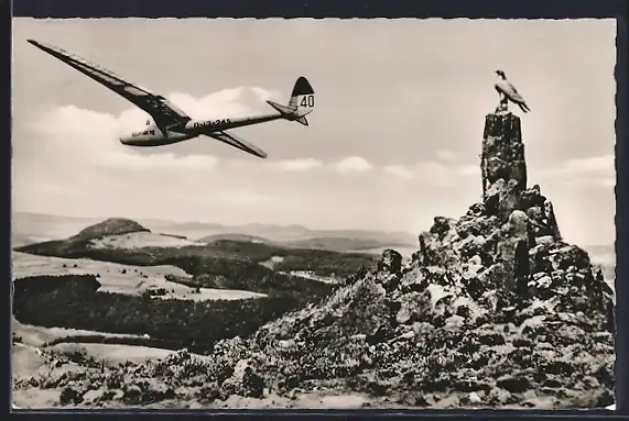 AK Wasserkuppe, Die Rhön, Fliegerdenkmal und Segelflugzeug