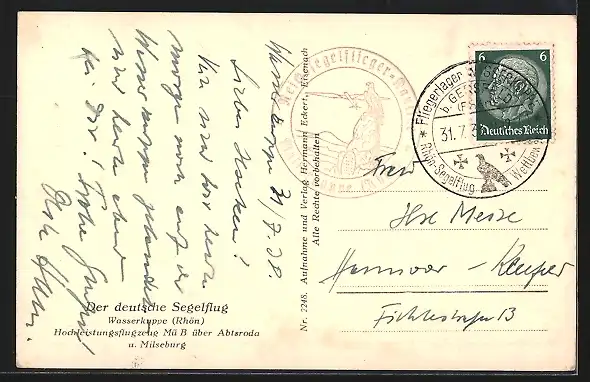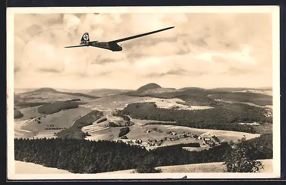AK Wasserkuppe, Segelflieger MÜ 18 in der Luft mit