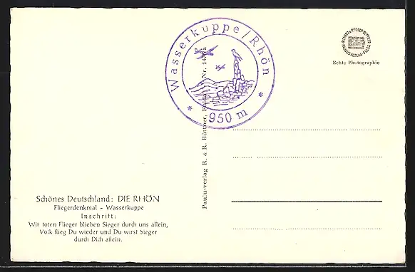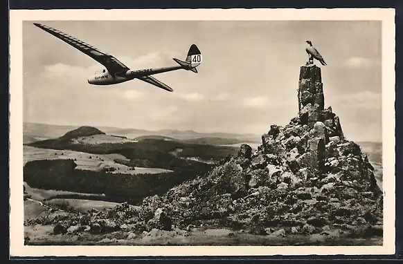 AK Wasserkuppe, Segelflieger Nürnberg passiert das Fliegerdenkmal