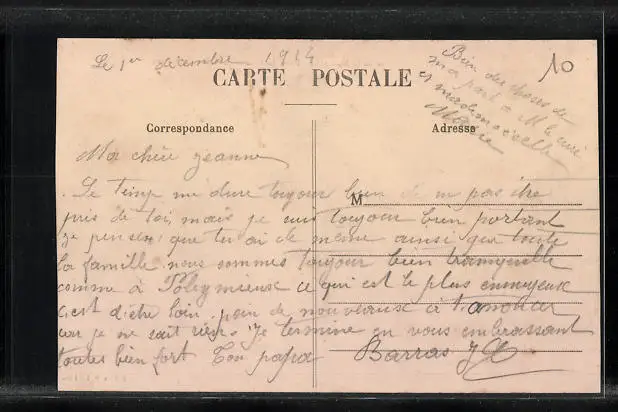 Personenbezogene Daten auf der Rückseite der Karte wurden durch blauen Textmarker unkenntlich gemacht. Die blauen Stellen sind auf die Vorderseite durchgeweicht und wirken sich negativ auf das Postkartenfoto aus