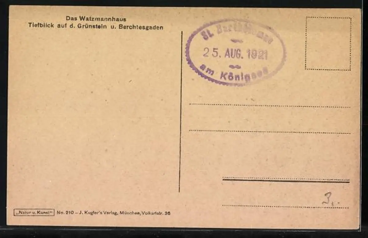 AK Watzmannhaus mit Tiefblick auf den Grünstein