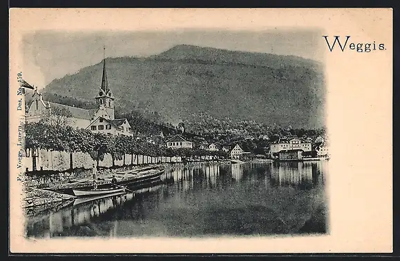 AK Weggis, Uferpartie mit Kirche