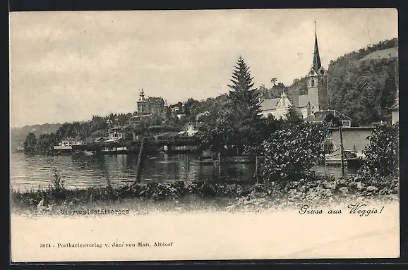 AK Weggis /Vierwaldstättersee, Uferpartie mit Kirche