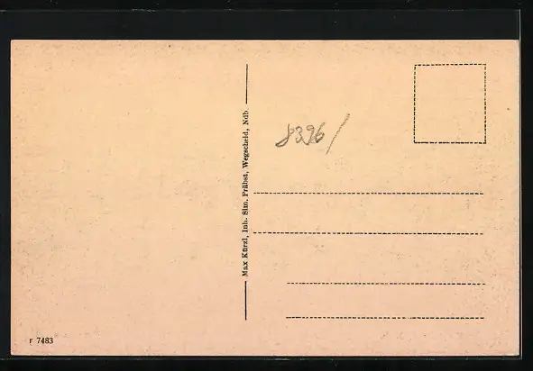 Personenbezogene Daten auf der Rückseite der Karte wurden durch blauen Textmarker unkenntlich gemacht. Die blauen Stellen sind auf die Vorderseite durchgeweicht und wirken sich negativ auf das Postkartenfoto aus
