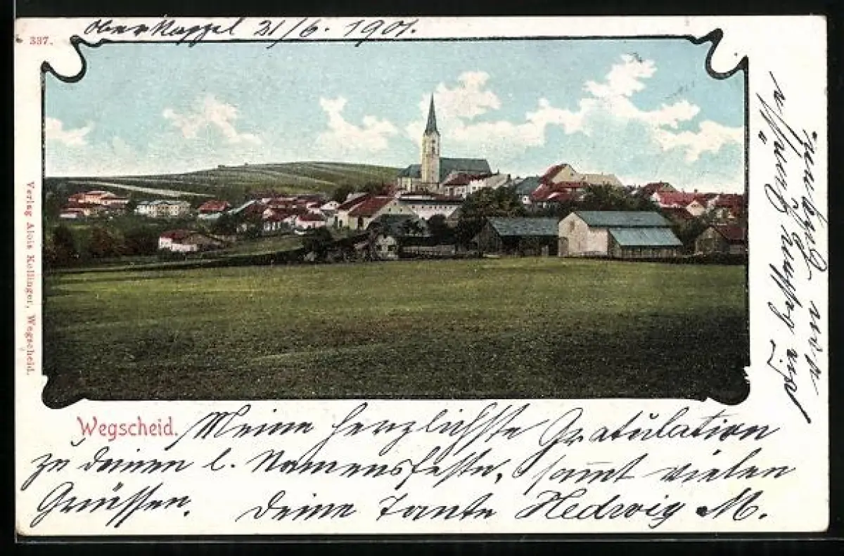 AK Wegscheid /Bayr. Wald, Teilansicht mit Kirche