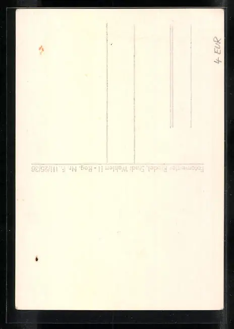 Personenbezogene Daten auf der Rückseite der Karte wurden durch blauen Textmarker unkenntlich gemacht. Die blauen Stellen sind auf die Vorderseite durchgeweicht und wirken sich negativ auf das Postkartenfoto aus