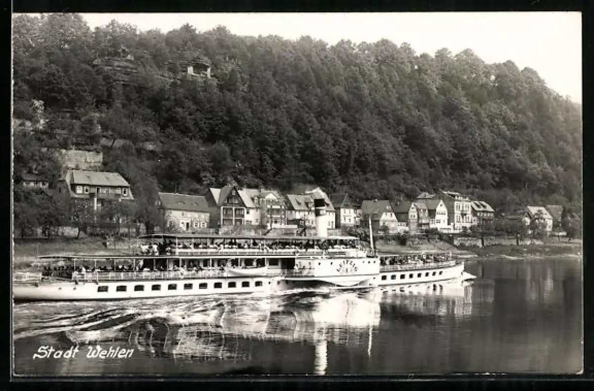 AK Wehlen, Raddampfer Leipzig auf der Elbe