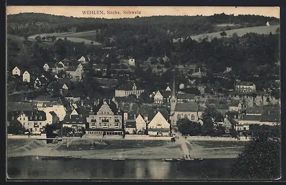 AK Wehlen /Sächs. Schweiz, Ortsansicht aus der Vogelschau