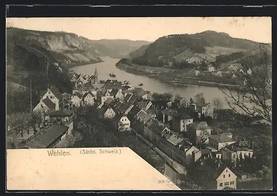 AK Wehlen / Sächs. Schweiz, Totale aus der Vogelschau
