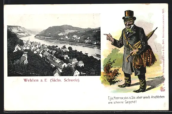 AK Wehlen a. E., Totalansicht, Fritze Bliemchen