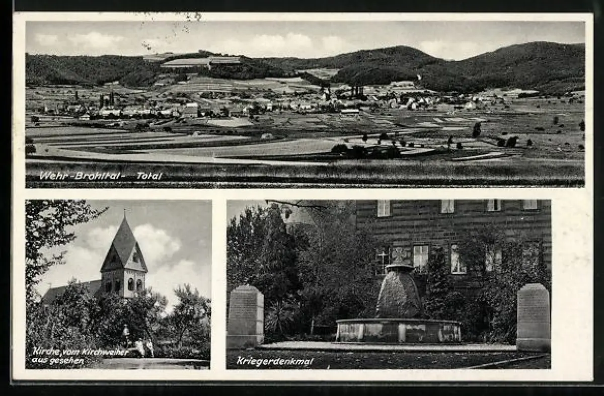 AK Wehr-Wehr-Brohltal / Eifel, Totalansicht, Kriegerdenkmal, Kirche