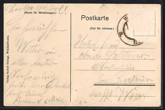 alte Ansichtskarte, gelaufen 1908, Briefmarke entfernt, guter Zustand