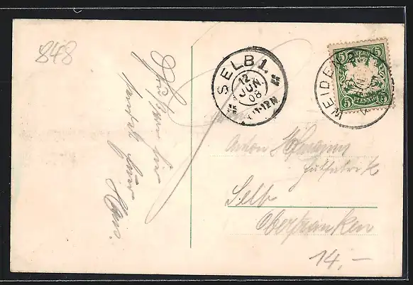 alte Ansichtskarte, gelaufen 1908, Stempelspur, guter Zustand