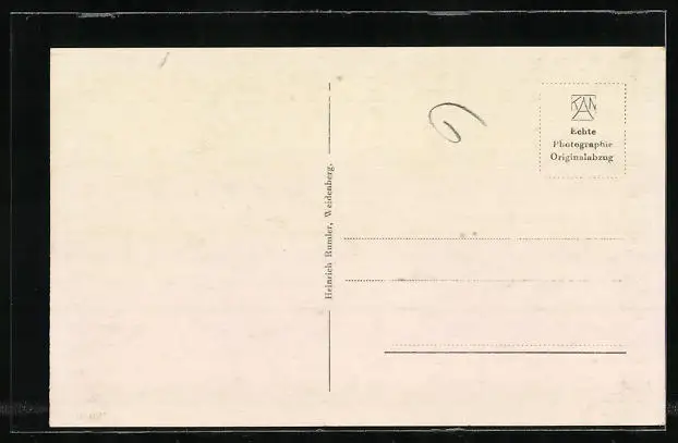 Personenbezogene Daten auf der Rückseite der Karte wurden durch blauen Textmarker unkenntlich gemacht. Die blauen Stellen sind auf die Vorderseite durchgeweicht und wirken sich negativ auf das Postkartenfoto aus