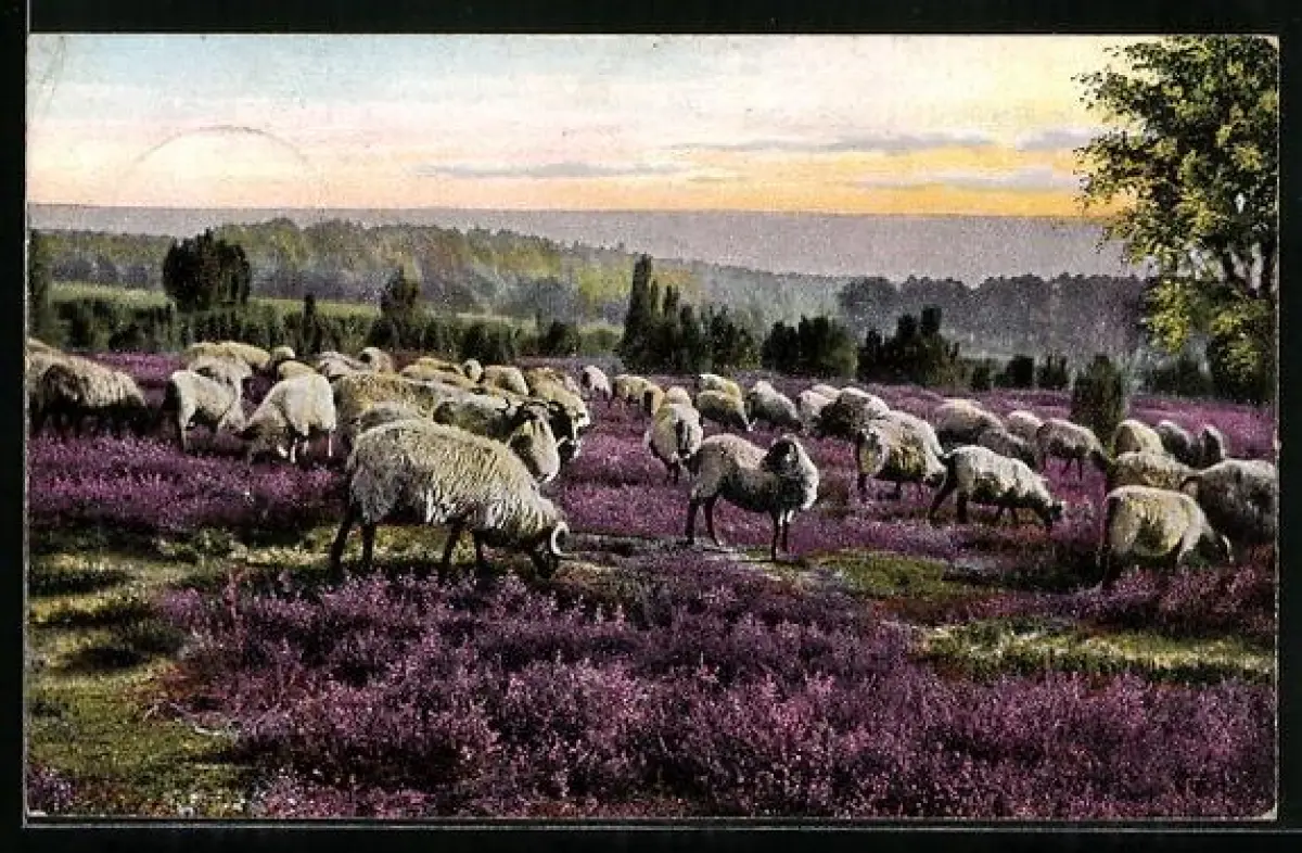 AK Weidende Heideschnucken in der Lüneburger Heide