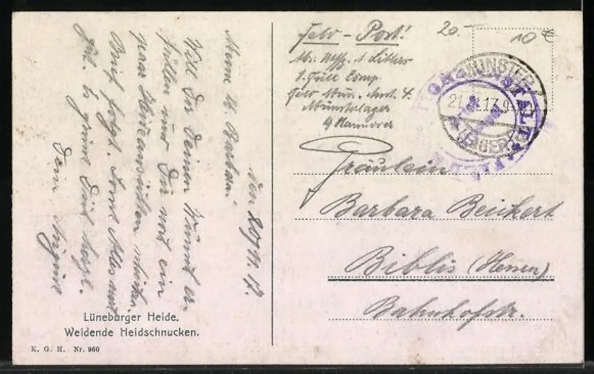 gelaufen 1917, Eckknicke li. oben, guter Zustand