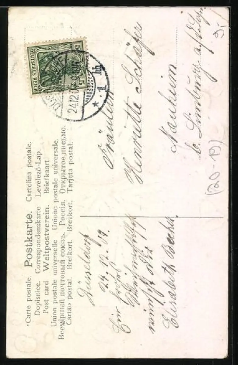 alte Ansichtskarte, gelaufen, Eckknicke oben, guter Zustand