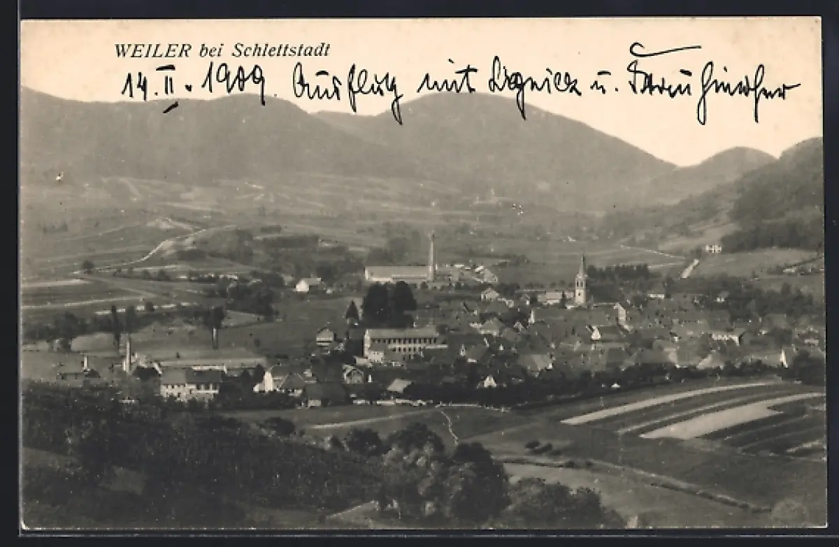 AK Weiler /Schlettstadt, Vue d`ensemble du village et des collines environnantes