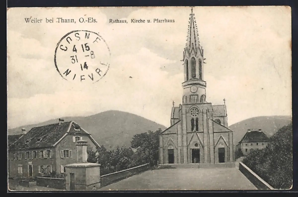 AK Weiler bei Thann, Rathaus, Kirche u. Pfarrhaus