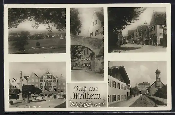 AK Weilheim / Obb., Panoramaansicht, Strassenpartie, Stadtplatz