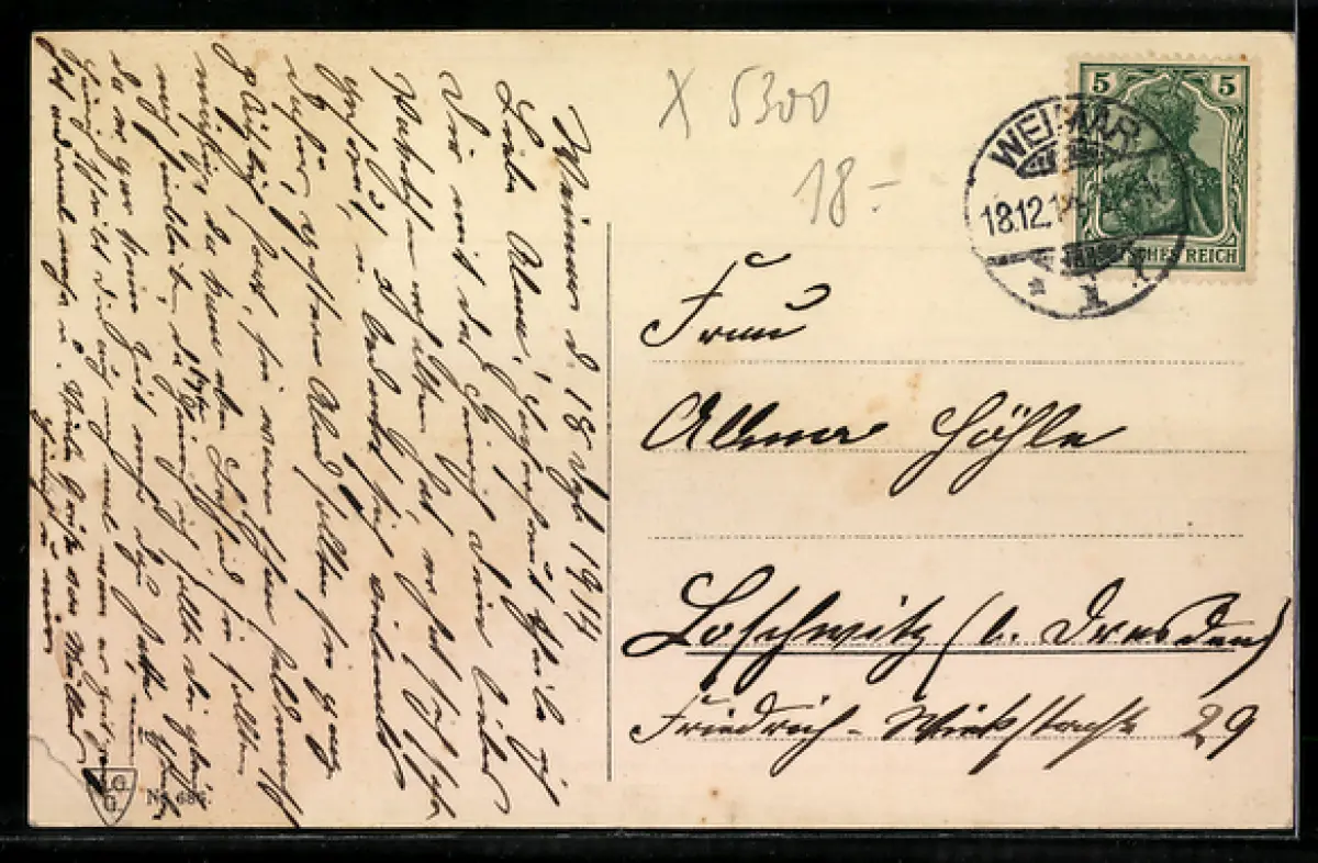 alte Ansichtskarte, gelaufen, Stempelspur, Eckknick unten rechts, guter Zustand