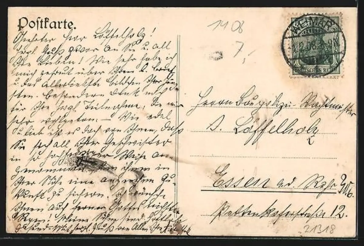 alte Ansichtskarte, gelaufen 1908, Stempelspur, guter Zustand