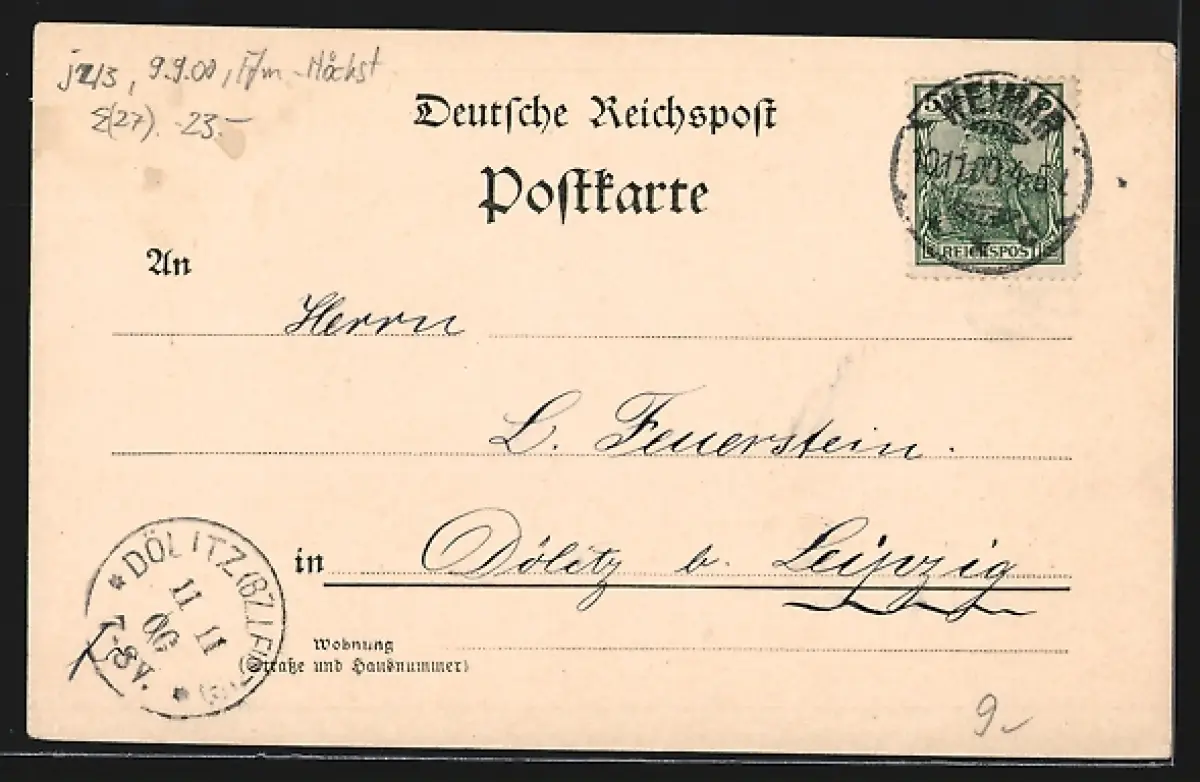 alte Ansichtskarte, gelaufen 1900, guter Zustand