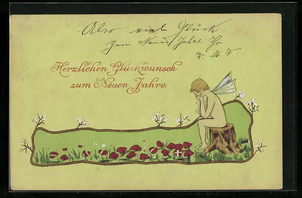AK Weinender Neujahrsengel mit gebrochenen Herzen