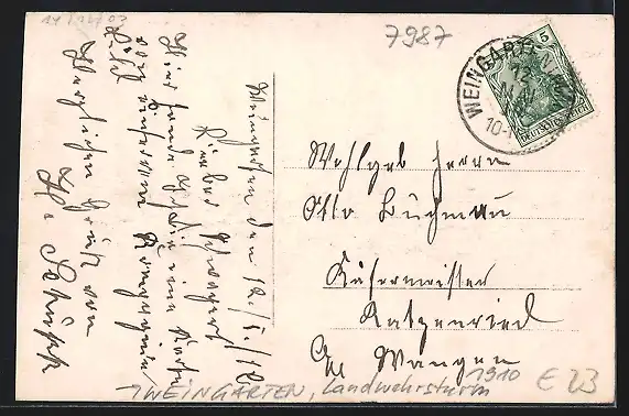 AK Weingarten / Württ., Landwehrsturm 1910