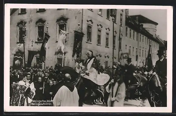 AK Weingarten in Württ., Heiligblutritter beim Umzug