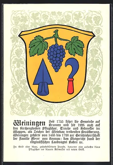 AK Weiningen, Wappen auf Blatt-Ornamenten, Info-Text