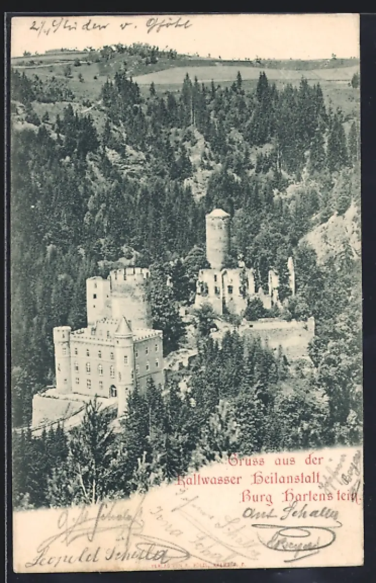 AK Weinzierl, Burg Hartensein mit Wald aus der Vogelschau