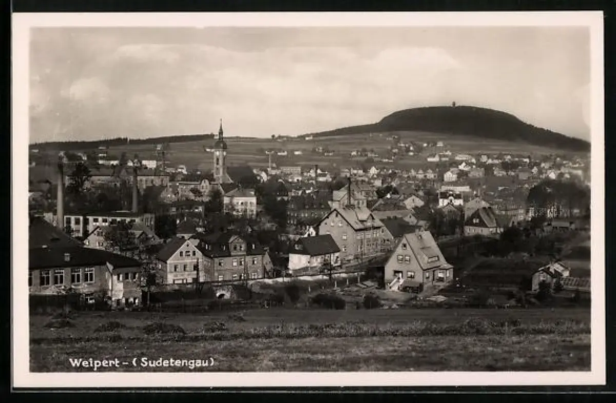 AK Weipert /Sudetengau, Panorama mit Kirche