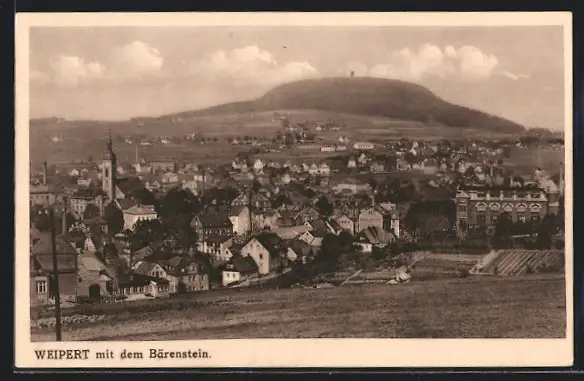 AK Weipert / Vejprty, Panoramaansicht mit Dorfkirche und Bärenstein
