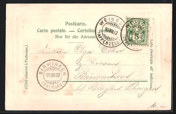alte Ansichtskarte, gelaufen 1902, guter Zustand