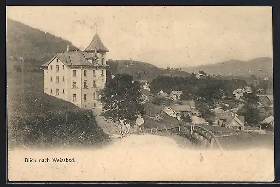 AK Weissbad, Blick nach Weissbad, mit Ziegenhirte