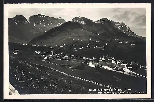 AK Weissbad, Ortsansicht mit Marwies, Ebenalp und Oehrli