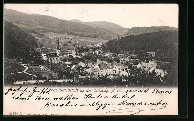 AK Weissenbach a. d. Triesting, Ortsansicht mit Kirche