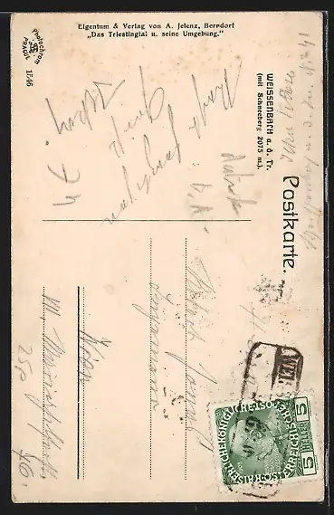 AK Weissenbach an der Triesting, Teilansicht mit Schneeberg
