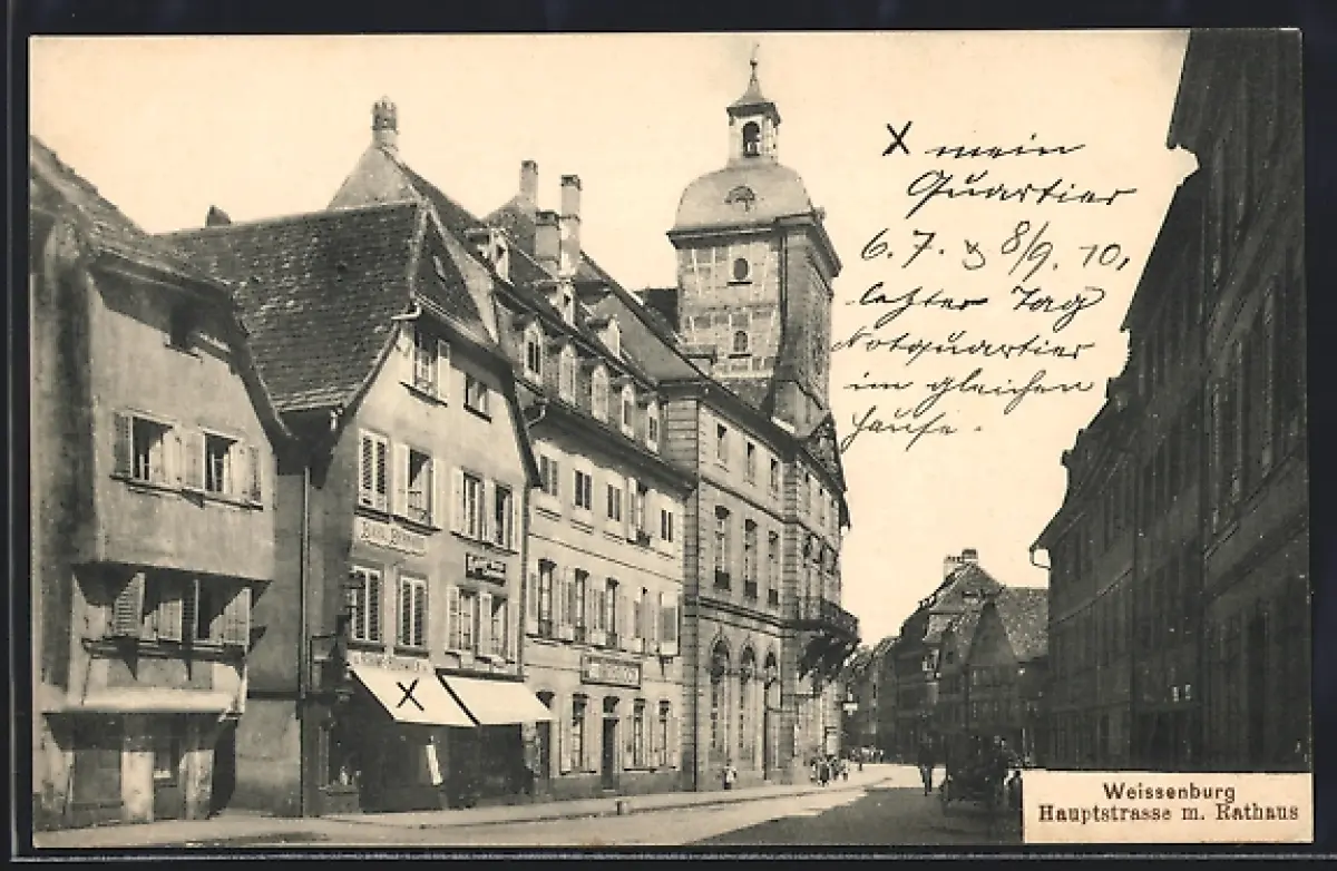 AK Weissenburg, Hauptstrasse mit Rathaus