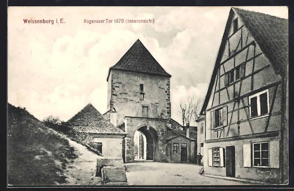 AK Weissenburg i.E., Hagenauer Tor 1870, Innenansicht