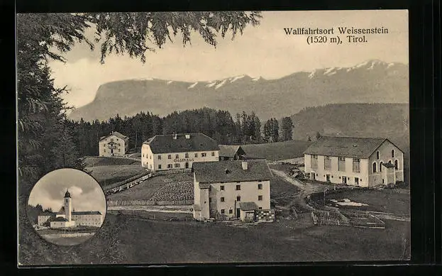 AK Weissenstein, Ortsansicht mit Gasthaus und Kirche